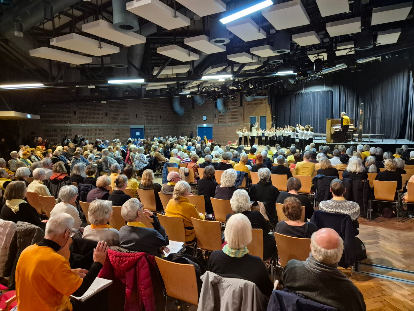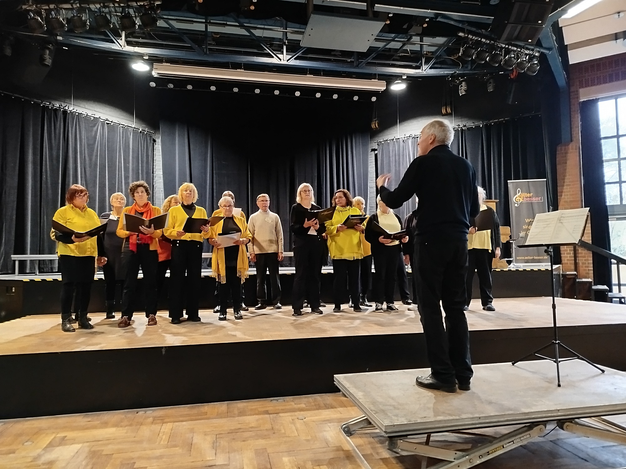 Nach 2 intensiven Probeeinheiten und einer Stellprobe, konnten wir uns noch einmal entspannen begann das Konzert um 16:00 Uhr. Inka Stubbe, die Geschäftsführerin von älter & besser und unser "Häuptling", leitete souverän durch das Programm. Die Chorleiterinnen und Chorleiter Hanna Ramminger von der Eppendorfer Spätschicht, Michael Jan Haase vom Chor N°7 aus Altona und Nele Quaas vom Langenhorner Chor dirigierten uns durch das Repertoire.